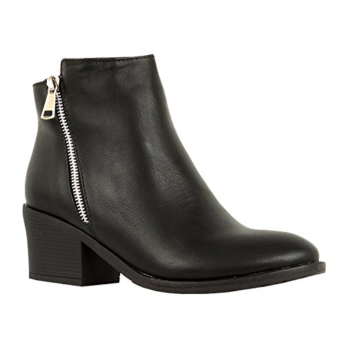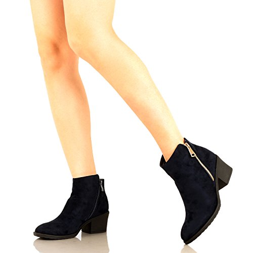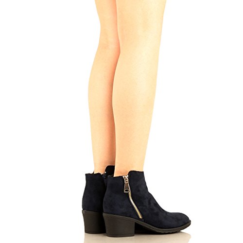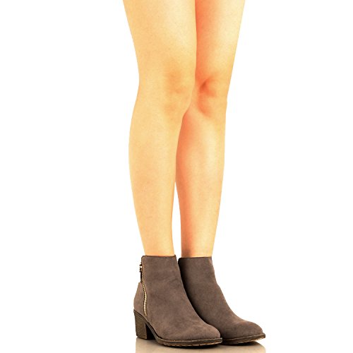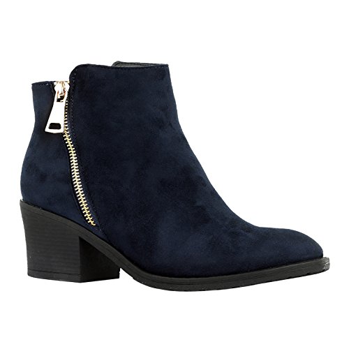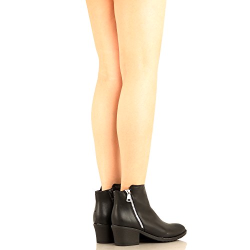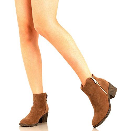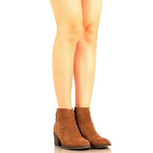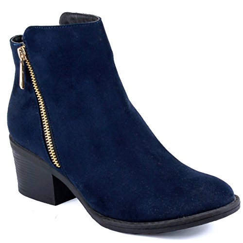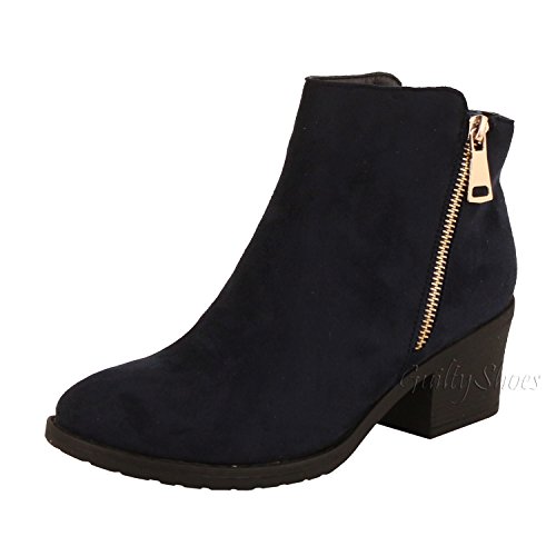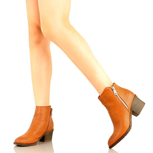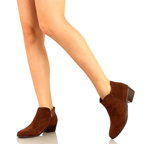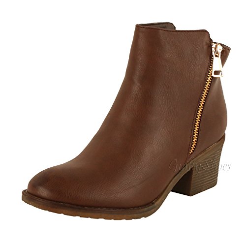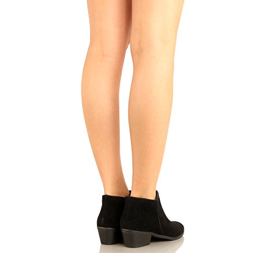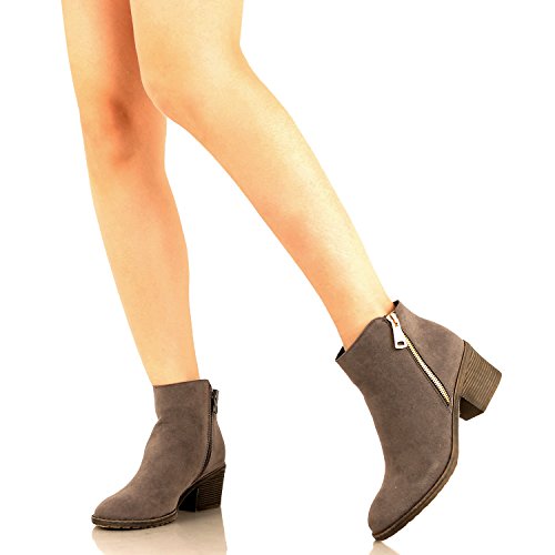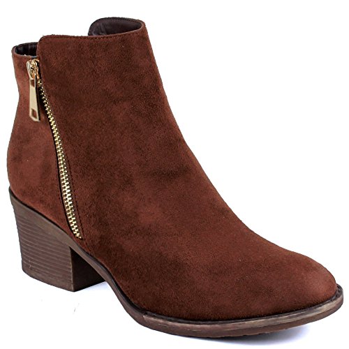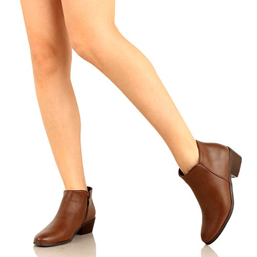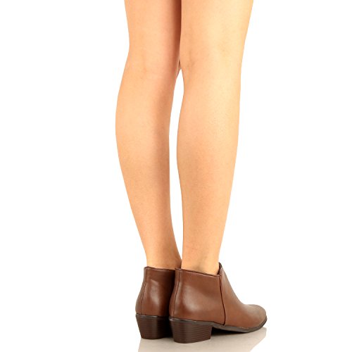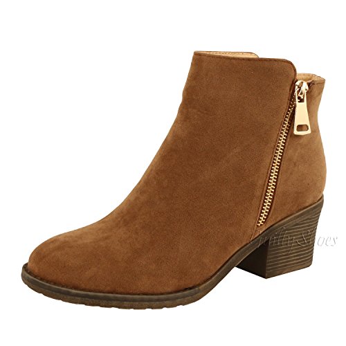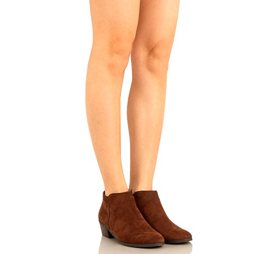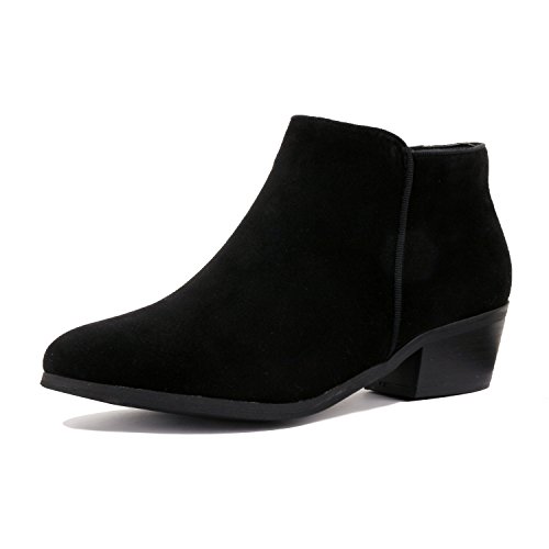 | Guilty Shoes - Women'S Stacked Chunky Heel - Side Zipper Pointy Toe - Comfort Western Ankle Boo... |