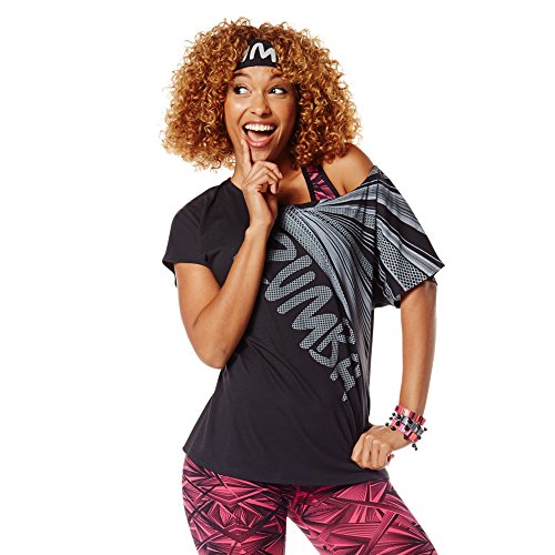 Zumba Fitness Women's Showin' Shoulder Tee, Back to Black, Medium