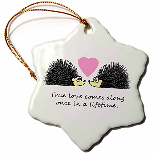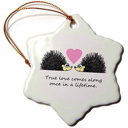 Janna Salak Designs True Love Comes Along Once in a Lifetime Cute Hedgehog Love Design Snowflake Porcelain Ornament, 3-Inch