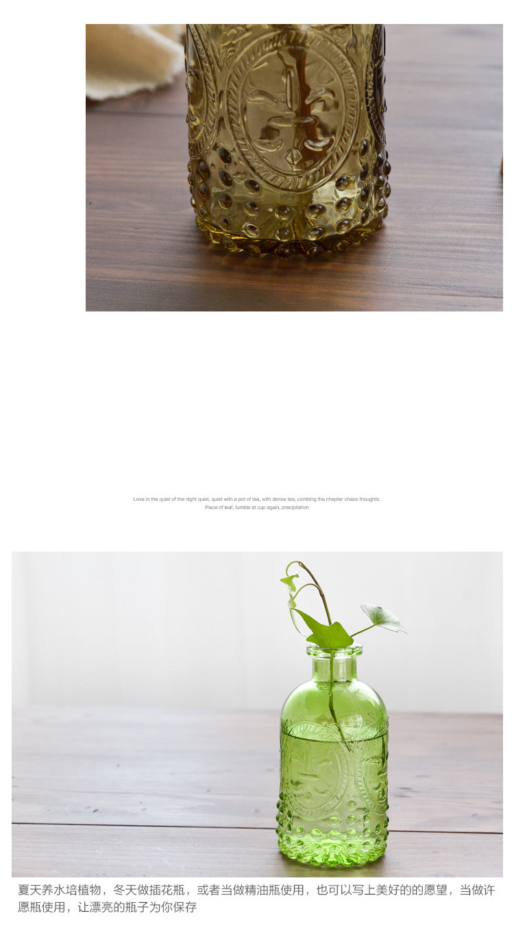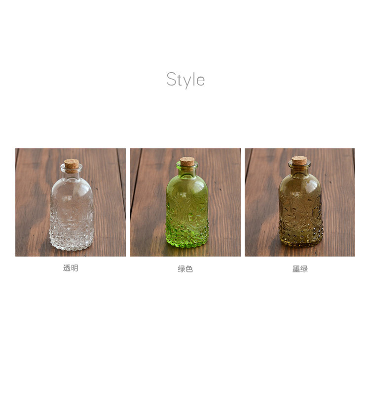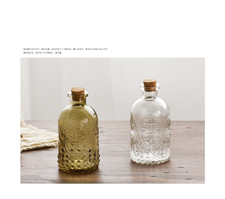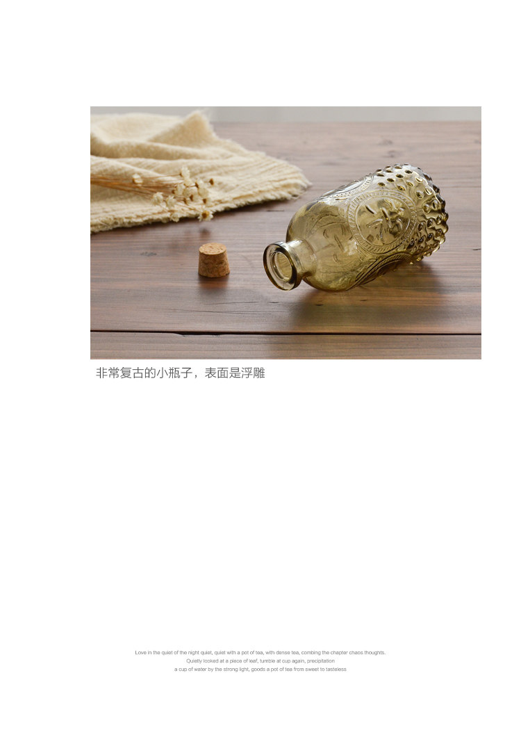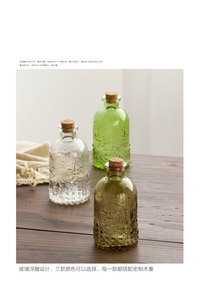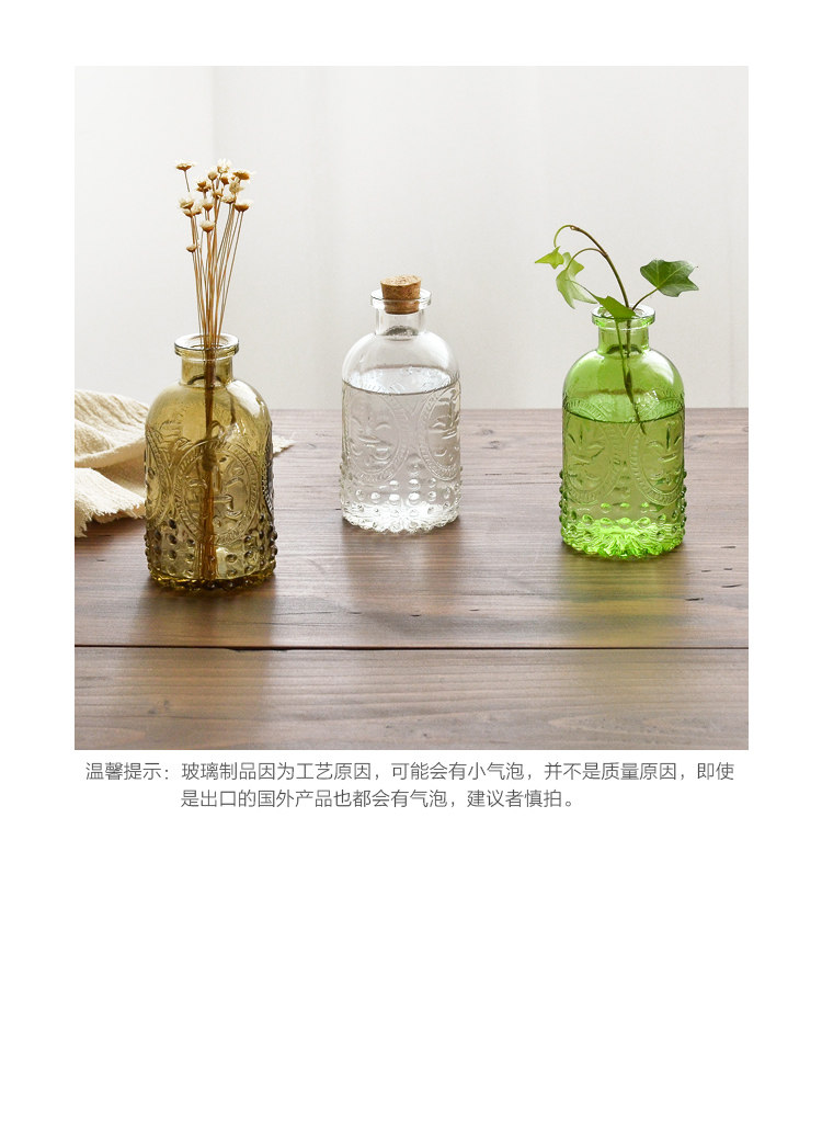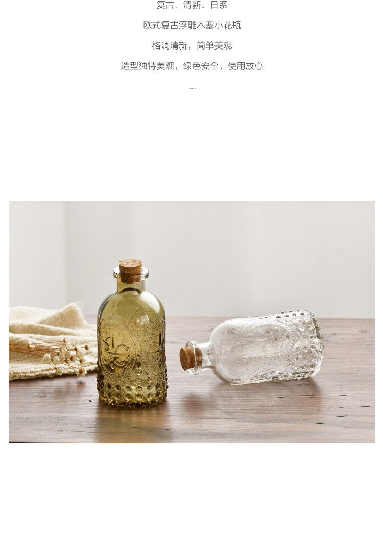 复古玻璃浮雕小花瓶密封插花瓶水培容器软木塞香薰瓶