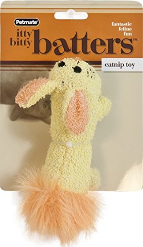 Studio : Doskocil Publisher : Doskocil Binding : Misc. Product Description Batters are adorable, catnip filled characters that your cat is sure to love! Available in two sizes, perfect for kittens and cats alike. Let your cat display that hilarious instinctive behavior we call rabbit kicking - with these tiny-sized cat toys. She'll take one of these Batter toys, roll over with it, begin kicking wrestling it. These toys are perfect for displaying this instinctual behavior because they are big enough to be hugged, wrestled, kicked! Constructed of soft cloth furry plush with polyfill catnip to attract your kitty. 0