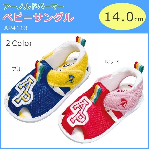 カラフルで可愛らしい、アーノルドパーマーのベビーサンダルです。ご自宅用としてはもちろん、贈り物としても喜ばれます。 製造国:インドネシア 素材・材質:アッパー:ポリエステルソール:PVC 商品サイズ:14.0cm 重量:片足:約68g ※サプライヤー直送品  ご注文後3~4営業日後の出荷となります【商品名】アーノルドパーマー ベビーサンダル 14.0cm AP4113 ブルー