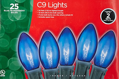 Holiday Wonderland 925B-88 25-Count C9 Christmas Light Set, Transparent Blue