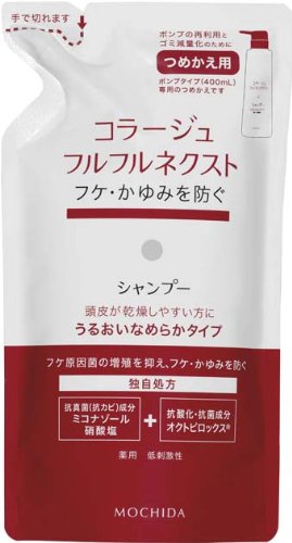 "collage furfuraldehyde next shampoo moisturizing smooth type refill 280ml" is a refill of medicated shampoo of miconazole nitrate blend. Suppresses the growth of dandruff-causing bacteria (mold), will effectively prevent dandruff and itching. The compounding the octopirox (R). Prevent sweat odor of the scalp, and prepares to clean and healthy scalp environment. It is hypoallergenic, fragrance-free, non-pigmented. Quasi-drugs. Firmly wet the entire usage scalp and hair, it took the appropriate amount, you rinse from carefully wash to massage the scalp in the belly of the finger.