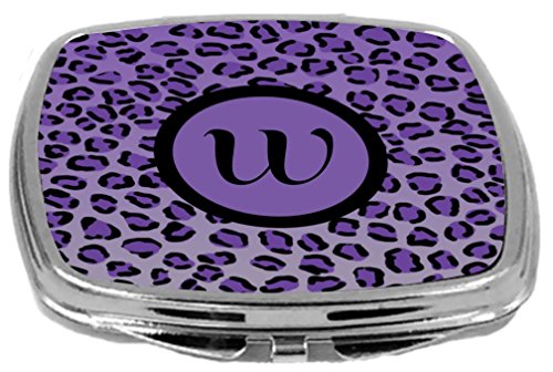 Rikki Knight Compact Mirror, Letter w Initial Purple Leopard Print