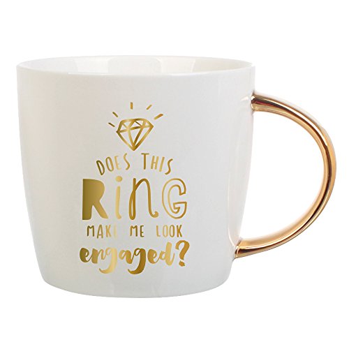 Does This Ring Make Me Look Engaged? 16 oz Porcelain Coffee/Tea Mug - Perfect Gift for Bride To Be, Soon To Be Bride or Bachelorette Gift Beautifully designed 16 oz mug with Gold Metallic Print and a Gold Metallic Handle Makes the perfect gift for the bride to be.... give this gift at the engagement party, bridal party, wedding shower or bachelorette party --- any bride is sure to love this fun wine glass If you need a bachelorette gift idea look no further - give it by itself, pair with a bottle of wine or wine accessories for a great gift that won't be forgotten Measures 5.25" x 3.625, Hand Wash Only 0 |