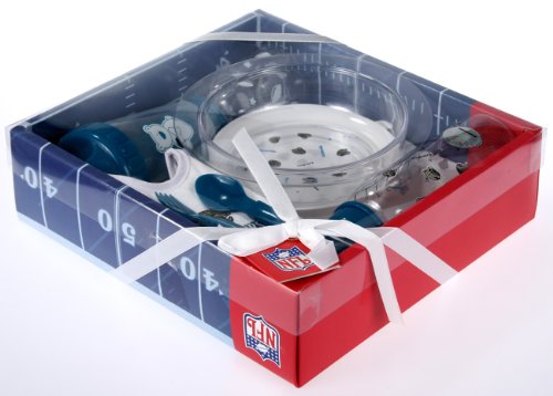 -. Feature : Officially NFL Licensed Baby gift set / Decorated with team name, logos and colors / Conveniently packed including NFL "From: To:" gift tag
