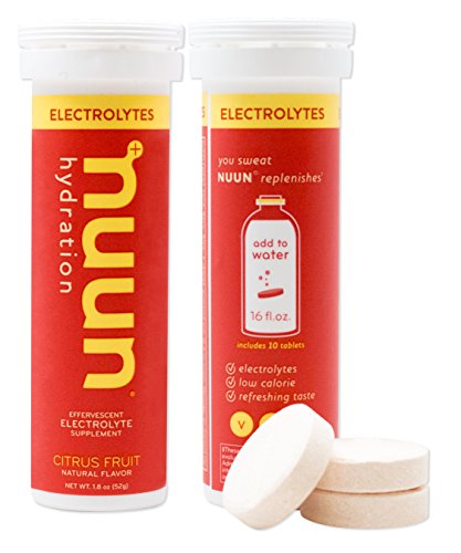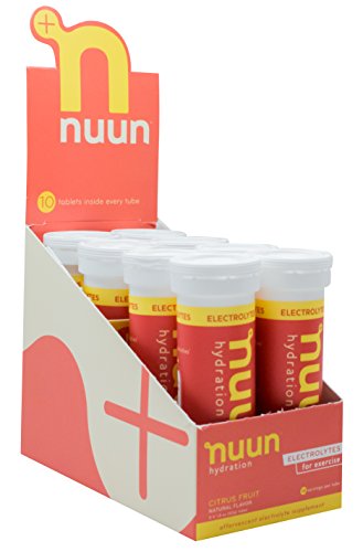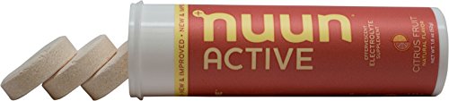 You sweat, Nuun Active replenishes! Nuun's signature profile of 4 key electrolytes help your body make the most of the water you're drinking. Each tube contains 10 effervescent tablets. Simply drop a tablet into 16oz of water to make Nuun! Each tablet delivers 360 mg Sodium / 100 mg Potassium / 25 mg Magnesium / 13 mg Calcium; electrolytes that help maintain fluid balance, prevent cramping, and aid in efficient muscle performance. Nuun is good for your body (low calorie, low carb, low sugar, no artificial flavors or colors), and good for the earth - one tube prevents the need for ten 16oz plastic bottles from sport drinks. And now, Nuun is new and improved! New Nuun uses the same base formula as original Nuun, with the following improvements: better performance and absorption, plant-based sweeteners, certified gluten free, vegan, soy and dairy free, and Informed Choice (safe for clean sport). 0 |