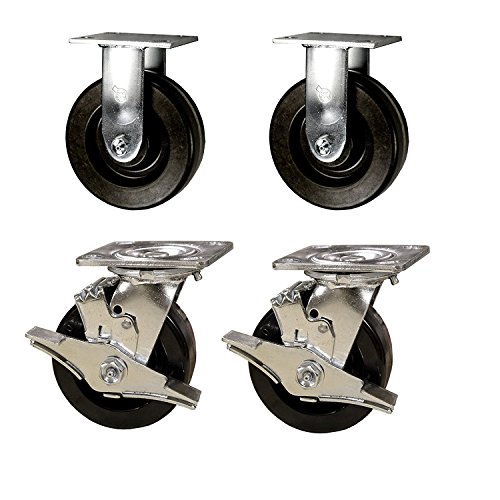 Service Caster SCC-30CS520-PHR-TLB(2)R520(2) Heavy Duty Toolbox Caster Set with Phenolic Wheels, 1000 pounds Capacity per Caster, 5" Size (Pack of 4)