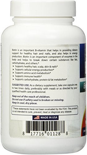 -. Feature : Promotes Healthy Hair and Strong Nails / biotin to support the metabolism of carbohydrates, fats, and proteins / Biotin is an important B-vitamin that provides dietary support for healthy hair and nails, as well as energy production. By supporting the matrix of hair and nails, Biotin promotes shiny, lustrous hair and strong, resilient nails. / Scientifically formulated to address vitamin deficiencies that could be the cause of hair loss, to promote cell growth, and to provide support to the natural hair follicle cycle / All Best Naturals products are manufactured in accordance with Good Manufacturing Practices (GMP), among the highest standards in the world -- Proudly Made in USA -- Purity & Potency Guaranteed