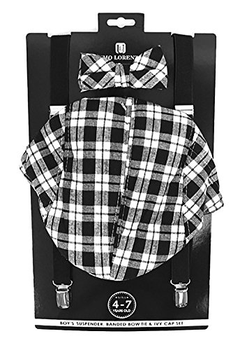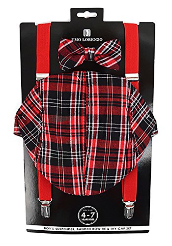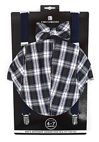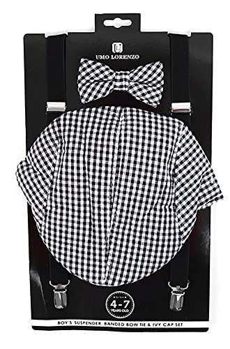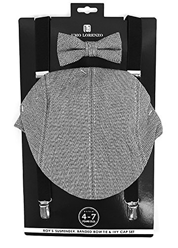 Product Description Trouble finding the perfect accessories for your little boy, then shop Selini's Formal Set for ages 4-7. This Boy's set features an Ivy cap with a matching bow tie and solid color suspenders. Perfect outfit for the big birthday or Christmas photo shoot. Dress up a plain button down shirt and seersuckers with these accessories for the next family wedding or night out. Your child is sure to have all eyes and compliments on him. 0