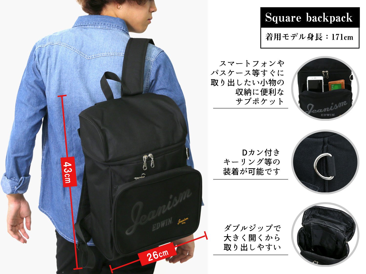 · Main storage (inner pocket × 2)