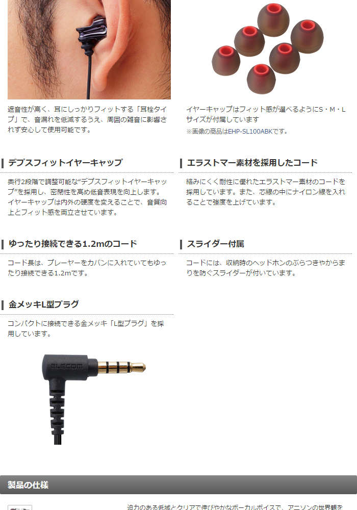 ●遮音性が高く、耳にしっかりフィットする「耳栓タイプ」で、音漏れを低減するうえ、周囲の雑音に影響されず安心して使用可能です。