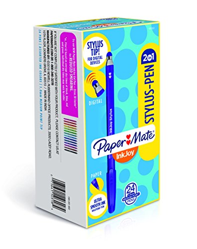 Paper Mate InkJoy 2 in 1 Stylus Ballpoint Pens, Medium Point, Assorted Ink, Box of 24 (1951351)