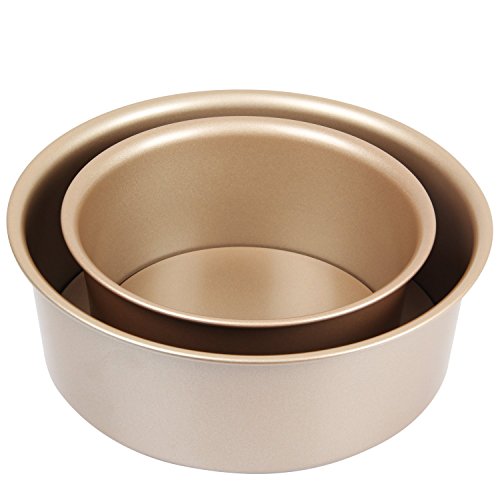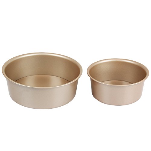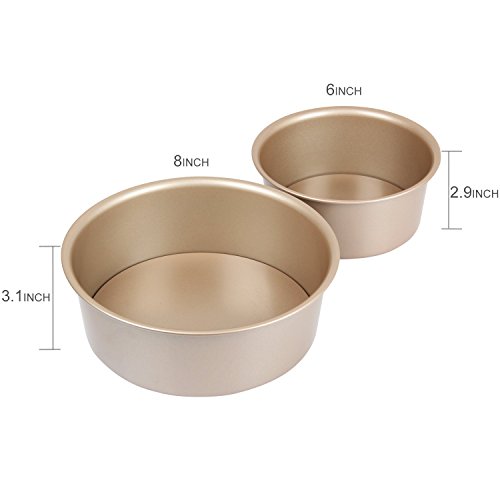 Yilove 6" and 8" Round Cake Pan with Removable Bottom (Champagne)