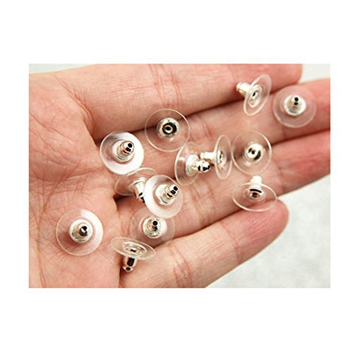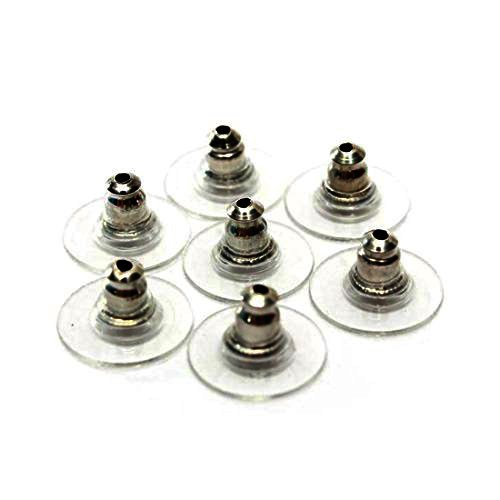Adorox Clear Silver Tone Bullet Clutch Safety Earring Replacement Backs Ear Nut Combo Pack (Clear & Silver (100 Pieces))