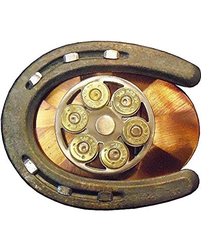 Studio : Exotic Buckles Publisher : Exotic Buckles Binding : Apparel Product Description American Heritage Stainless Buckles are a marriage of state of the art technology and good old fashioned hand craftsmanship. This bold. 44 magnum Gun Cylinder and Horseshoe Belt Buckle is a must-have for your buckle collection. This true to life design buckle features a spinning. 44 mag cylinder encircled by a horse shoe for a stunning look. The artist proudly initials the back of each buckle. Men's belt buckle measures 3 1/4" x 4". This is a handcrafted belt buckle, and no two are exactly alike. Any variance in color or design is part of the uniqueness of this buckle. 0