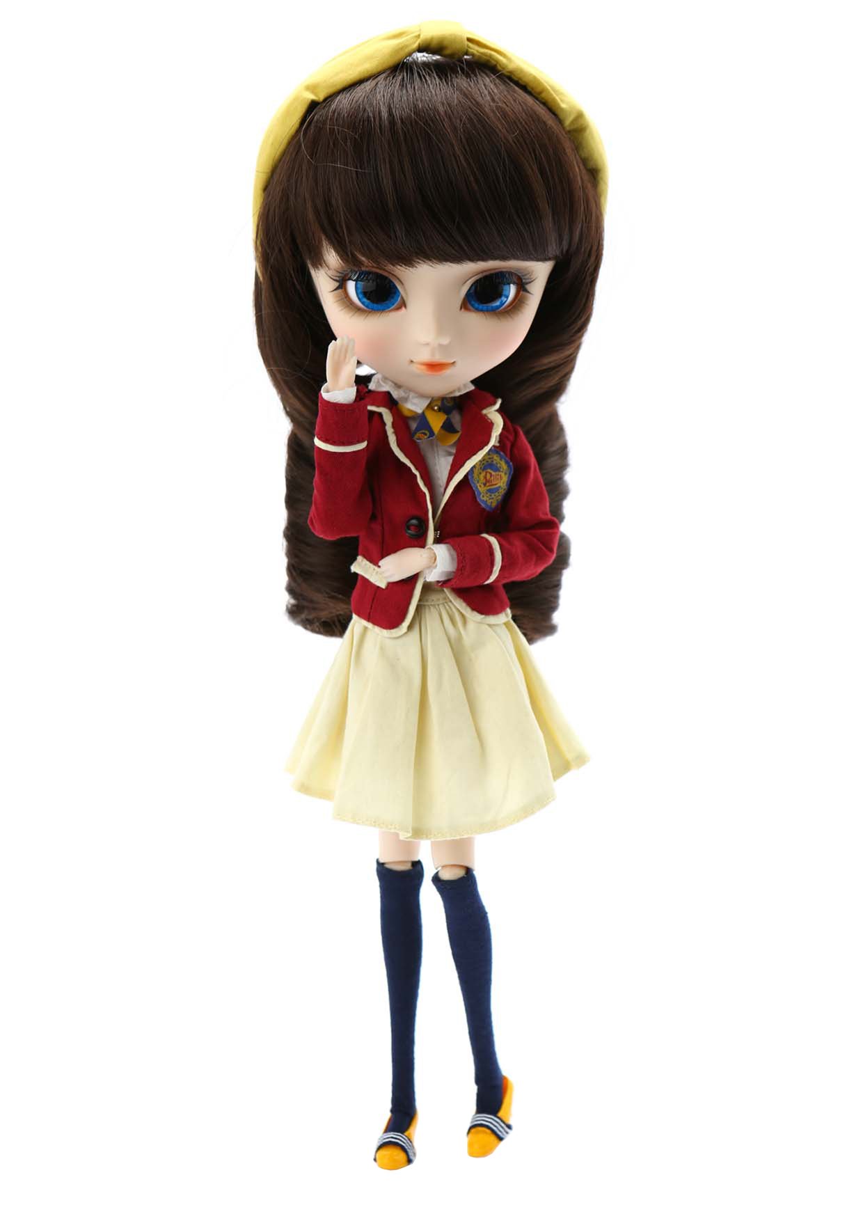 Pullip has dressed in a jacket of engine that entered the line with a fashionable girl of a lady's school and a flare skirt spreading softly, and vivid yellow shoes are accented.
