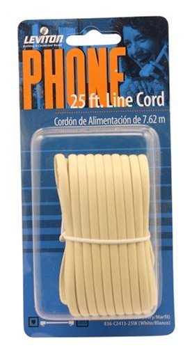 Leviton C2413-25I 25-Feet Flatwire Modular Phone Line Cord with Modular Plugs, Ivory