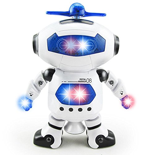 This fun electronic robot toy does not only dance, it plays music and has flashing lights too! The robot will dance to the beat and make a light show with the beautiful and colorful flashing lights that kids will love.