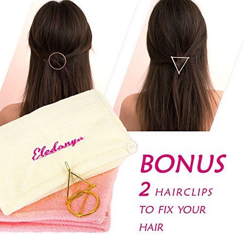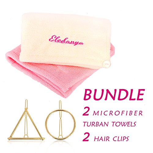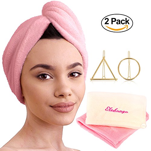2 Pack Microfiber Hair Towel Wraps for Quick Dry + 2 Hair Clips - Ultra Absorbent Head Towel for Delicate Hair - Microfiber Hair Turban Towel by Eledanya