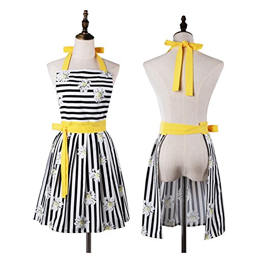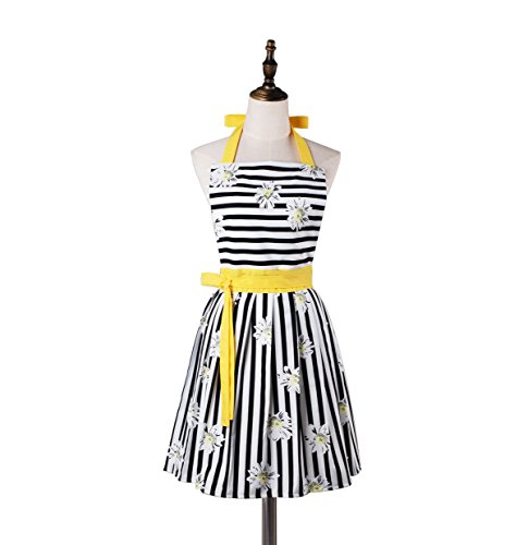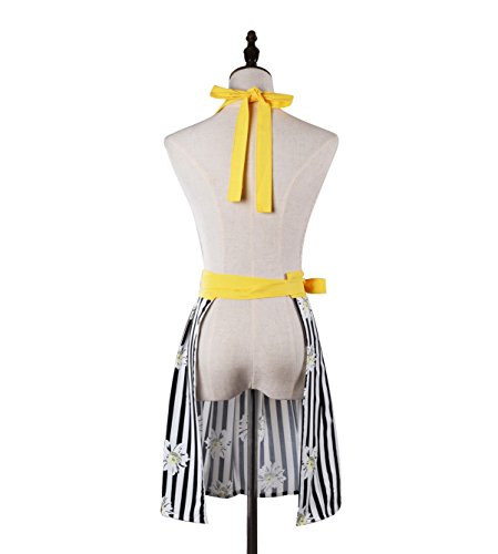 Lovely Comfortable Claccic Black Stripe and Fashion Daisy Skirt Kitchen Women Apron for Ladies Girls Wife Daughter (Yellow)