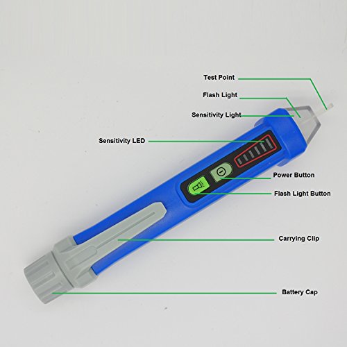 MT898 Non-contact AC Voltage Tester Pen, Peakmeter Voltage Measuring Tool Electrical Detector Sensing Range Ac 12V~1000V with Flash Light(blue)