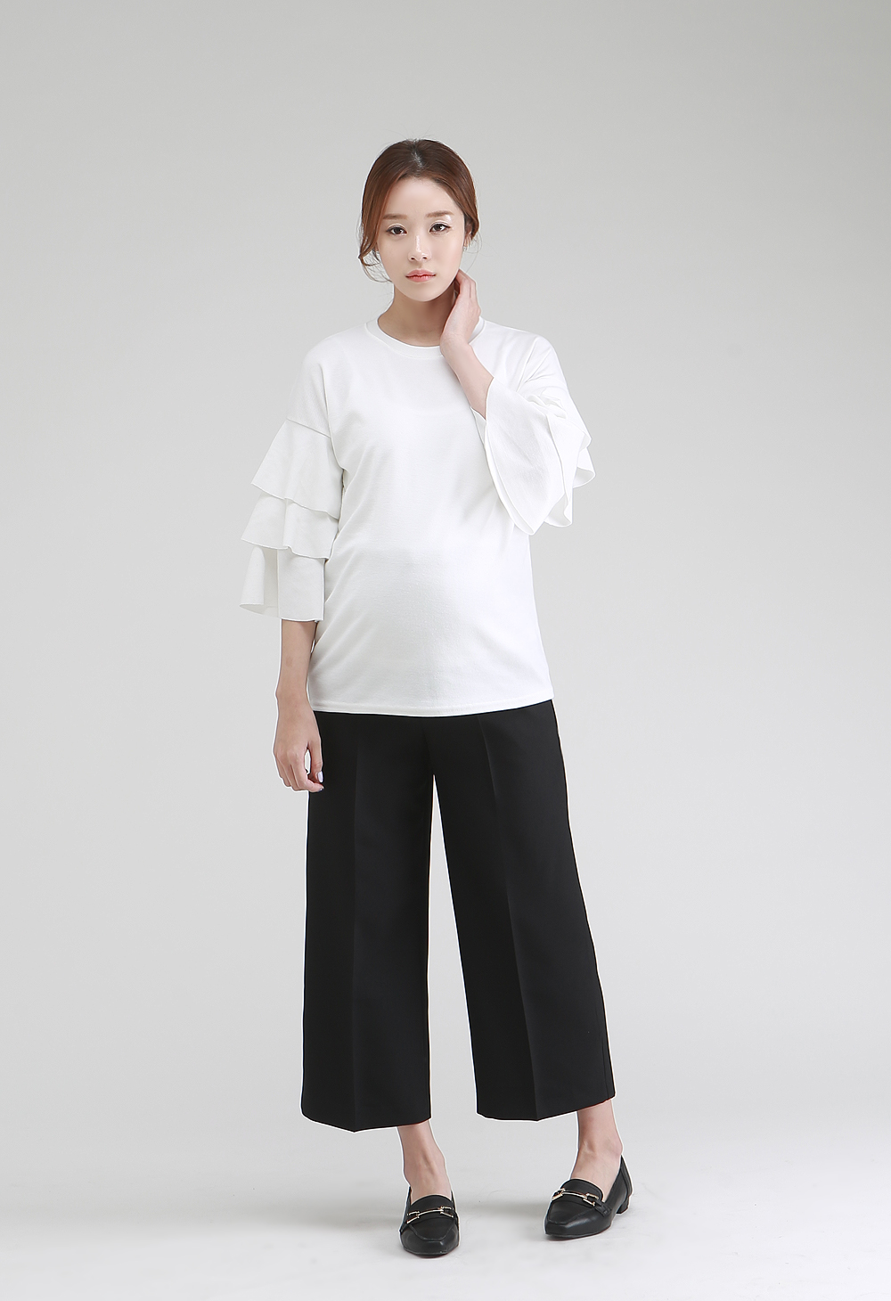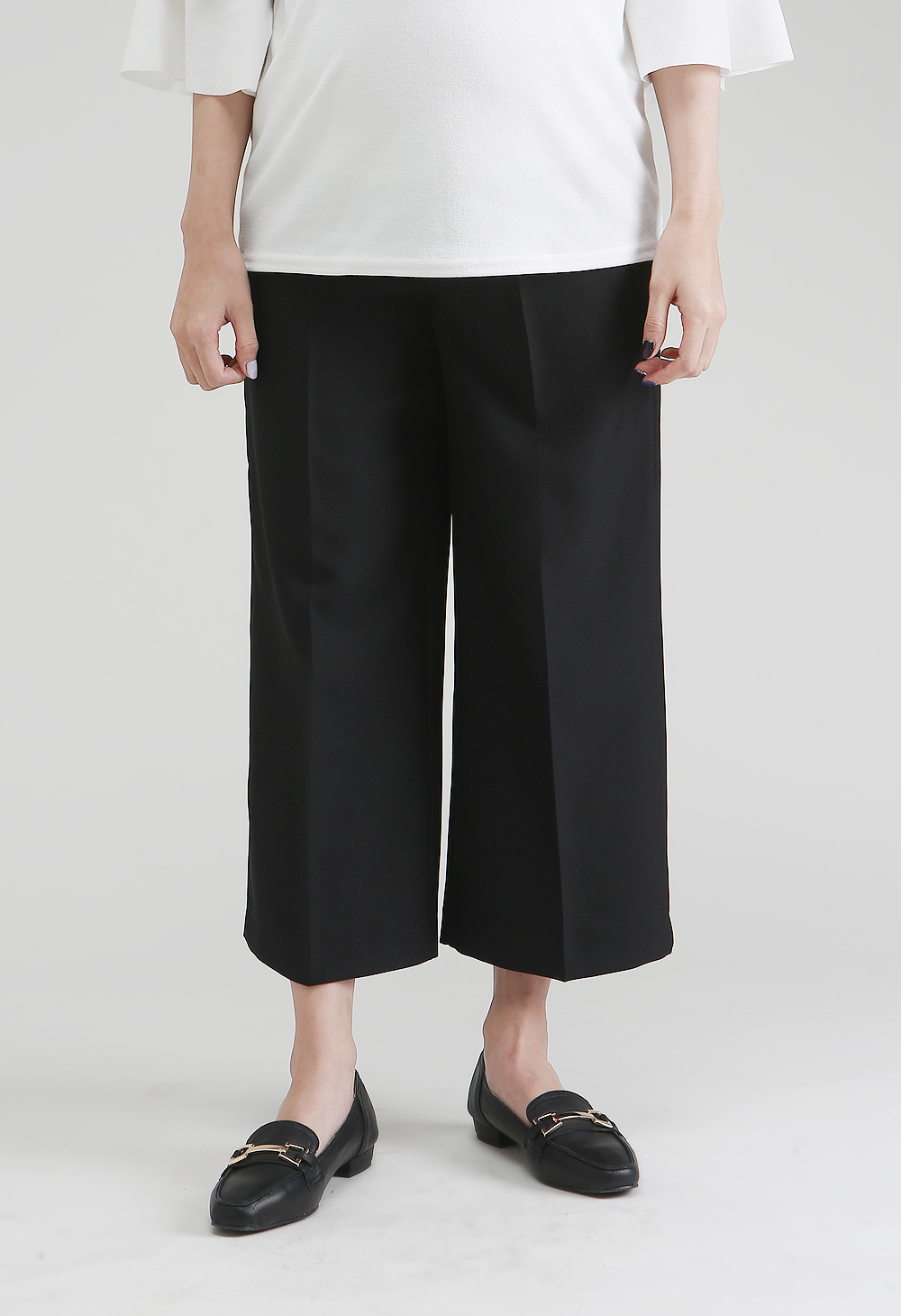 "8부기장으로 트렌디한 무드가 느껴지는 와이드 팬츠"
