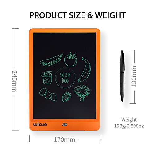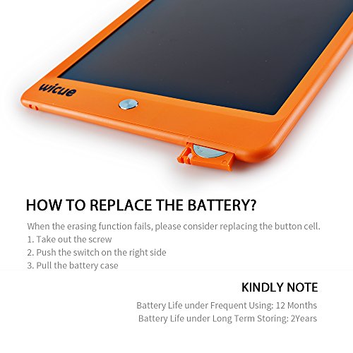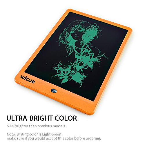 -. Feature : A KEY TO CLEAR: One click for removal. Gently press the switch, quickly erase the record. Writing Color: Light Green / ULTRA-BRIGHT COLOR: LCD writing surface is 50% brighter than previous models. Writing experience is comparable to pen on paper. Note: Writing color is Light Green, make sure if you would accept this color before ordering. / POWERFUL LOCK FUNCTION: A Lock Key is available to save your ideas or drafts for a while. / LOW POWER CONSUMPTION: Built in 3V replaceable coin battery (easy to replace), could write over 50000 times. / WHAT YOU GET: 1x 10" LCD Board (5mm thick), 1x Writing Stylus [weight 193g/6.80oz], 1xUser Manual; you could write with finger nails, but we recommend to write with stylus pen.