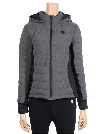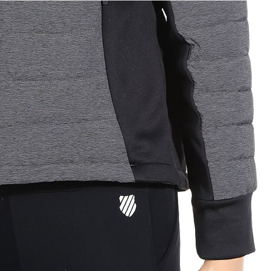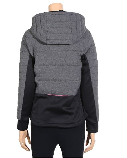 폴리 소재의 우븐과 저지 원단이 믹스된 패딩 자켓입니다.