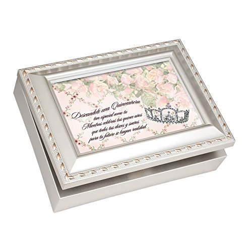 Quinceanera Champagne Silver Finish Jewelry Music Box Wind Beneath My Wings