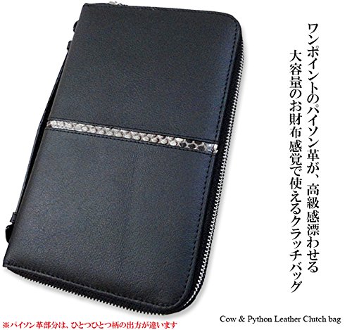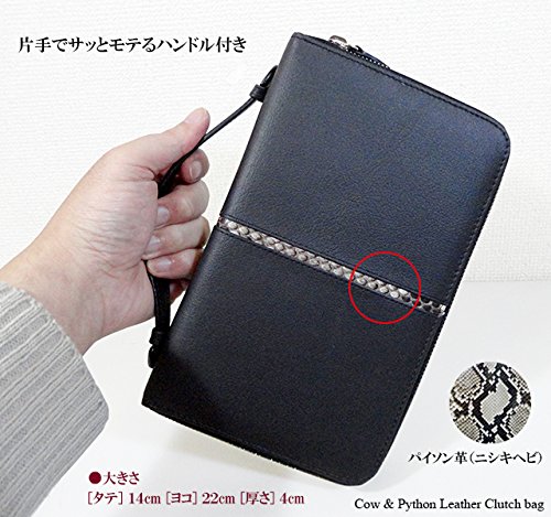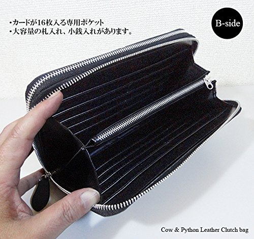 -. Title : メンズ 牛革&パイソン革 ダブルファスナー クラッチバッグ