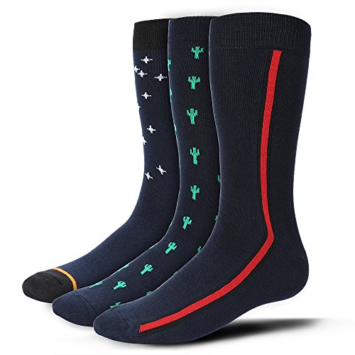 -. Binding : Apparel -. Brand : u&i socks -. Color : Navy -. Department : mens -. EAN : 0747742732980 -. Feature : 68% Cotton, 3% Nylon, 18% Polyester, 11% Spandex / SIZING: Fits Mens shoe sizes from 7 to 13. / BOLD DESIGN: The fun cacti, bold red stripe, and star design socks are fun and approP.R.Iate for all occasions. Spice up your outfit with u&i patterned dress socks! / COMFORT FIRST: The BEST quality cotton along with seamless stitching and a compression top "tube" area maximize the overall comfort. / CARE: Recommended wash before wear and dry on low heat. -. IsAdultProduct : 0 -. ProductGroup : Apparel -. ProductTypeName : SOCKSHOSIERY -. Size : one-size-fits-all -. Title : u&i Men's Novelty Premium Cotton Fun Patterned Dress Socks STRIPE STAR CACTUS 3 Pack -. UPC : 747742732980