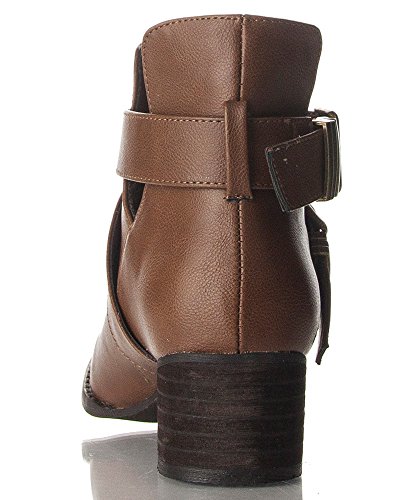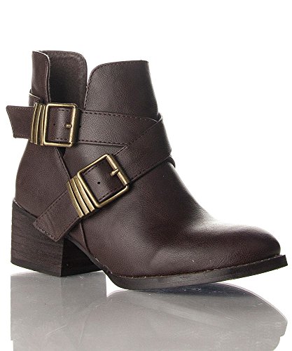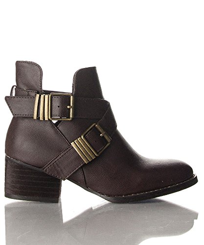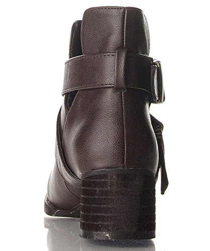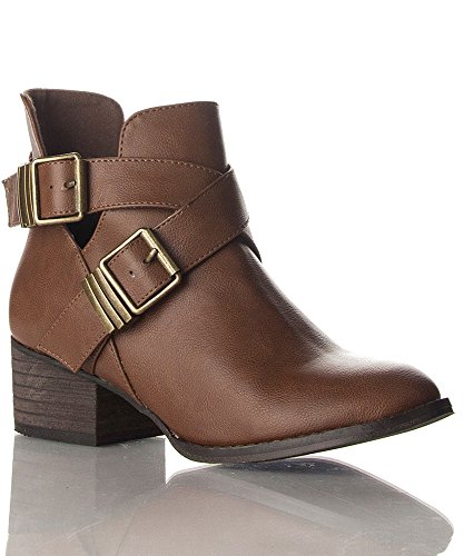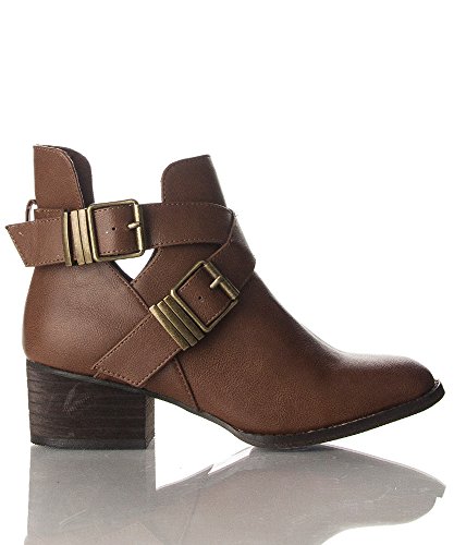 Breckelle Bronco-11 Vegan Leather Strappy Closed Toe Cut Out Buckle Ankle Booties
