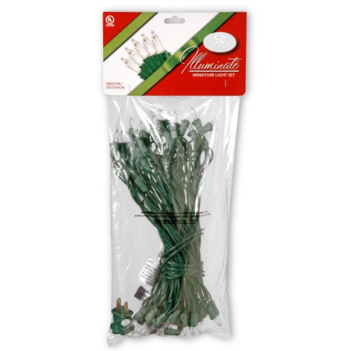 National Tree 50 Bulb Outdoor Clear Illuminate Light Set with Green Wire and 36-Inch Lead Wire with 9-Inch Spacing and 2 Spare Bulb (LS-809-50)