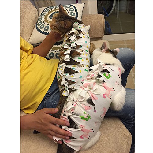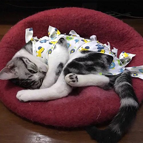 -. Feature : 【Comfortable Material】Made of cotton (manual cutting).Breathable and light fabric helps the wound to heal safely. / 【Protection & Recovery】It is suitable for protecting the self-destructive affected part such as breast tumor, protection of the wound after open surgery, abdominal part with wound after laparotomy surgery, contraceptive surgery and so on / 【Unique Design】Post-operative clothes designed by pet care advisers for cats are adopted for postoperative care at animal hospitals throughout the country / 【Features】It is postoperative clothes to prevent scratching licks.Breathable and elastic / 【Best Christmas Gift for Cat Lover】It is really cute and pratical,a perfect gift for lovers, friends who love pets.Warm Reminder: You'd better buy TWO pcs, convenient to clean and wash.