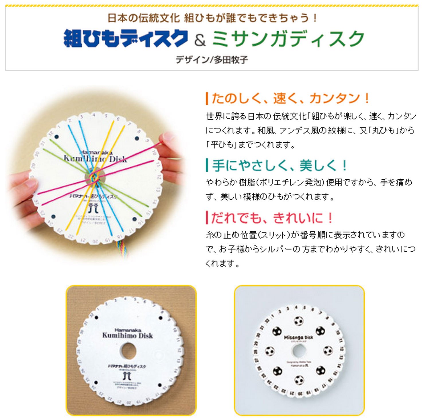 Soft resin (polyethylene foam) is used, so you can make beautiful patterned strings without hurting your hands.