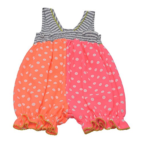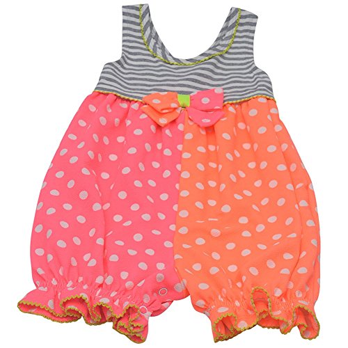 -. Binding : Apparel -. Brand : Bonnie Jean -. ClothingSize : * -. Color : Pink -. Department : baby-girls -. Feature : A playful romper from Bonnie Jean for your baby girl to wear during sP.R.Ing/summer / Grey striped pattern on the upper part and pink and orange bottom with polka dots / Elasticated ruffle cuffs ensure the pants stay fit on those crawling baby legs / Material: 97% Polyester, 3%Spandex, Exclusive of decoration. Care Instructions: Machine wash cold gentle cycle with like colors, wash inside out do not bleach, line dry do not iron / Sizing is based on U.S. clothing size standards -. Label : Bonnie Jean -. Manufacturer : Bonnie Jean -. MPN : S07311-CVPNK -. NumberOfItems : 1 -. PackageQuantity : 1 -. PartNumber : S07311-CVPNK -. ProductGroup : Apparel -. ProductTypeName : DRESS -. Publisher : Bonnie Jean -. Size : One Size -. Studio : Bonnie Jean -. Title : Bonnie Jean Baby Girls Pink Orange Dot Pattern Bow Accent Stripe Romper 3-24M