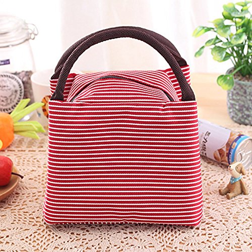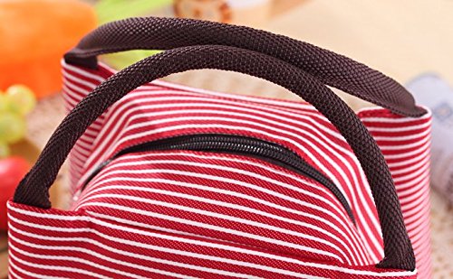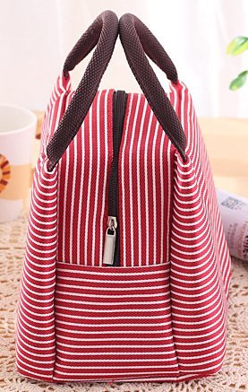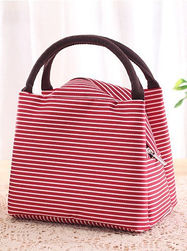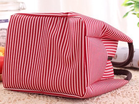Red Striped Lunch Bags Insulated Tote Handbag Outdoor Travel Picnic Lunch Box Bag For Women Girls