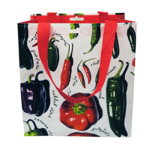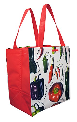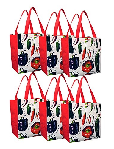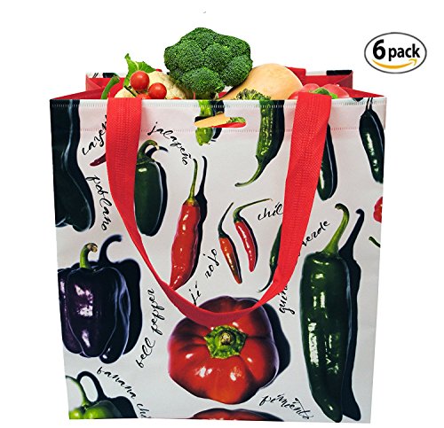 Earthwise Reusable Grocery Bags Shopping Tote w/ Peppers Print Eco Friendly (6 Pack)