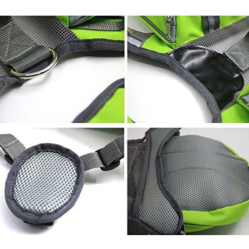 -. Feature : Convenient pockets for carrying food, water, and gear for you and your pet wherever you go / Balanced assistance handle helps lift dog up and over obstacles / Our backpack is Small sized(Neck Girth: 36-41cm/14.1-16.1 inch,Chest Girth: 58-64cm/22.8-25.1 inch,Stomach Girth: 34-51cm/13.4-20.1 inch) / Made of high quality 600D Oxford cloth, breathable harness bring your loved dog comfortable feelings. Your dog won't be bothered by the backpack at all. / Perfect adjustable straps and neck circumferenc, secure everything in place.