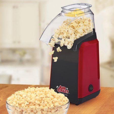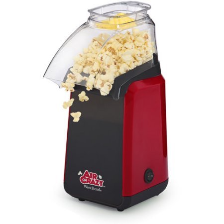 -. Brand : West Bend -. Color : Red -. EAN : 0726088205624 -. Feature : 4-qt red popcorn popper puffs plenty of kernels in less than 2 minutes / Improved chute design Easy-to-reach on/off switch / Cool-touch base / Includes measuring cup with single portions and family-sized portions / Cord storage inside unit Measuring cup doubles as butter warmer -. Label : West Bend -. Manufacturer : West Bend -. Model : 82418R -. MPN : 82418R -. PartNumber : 82418R -. ProductGroup : Kitchen -. ProductTypeName : KITCHEN -. Publisher : West Bend -. Size : 13.30 x 13.30 x 7.80 Inches -. Studio : West Bend -. Title : West Bend Air Crazy Red Cool-touch Base 4-Qt Hot Popcorn Popper -. UPC : 726088205624