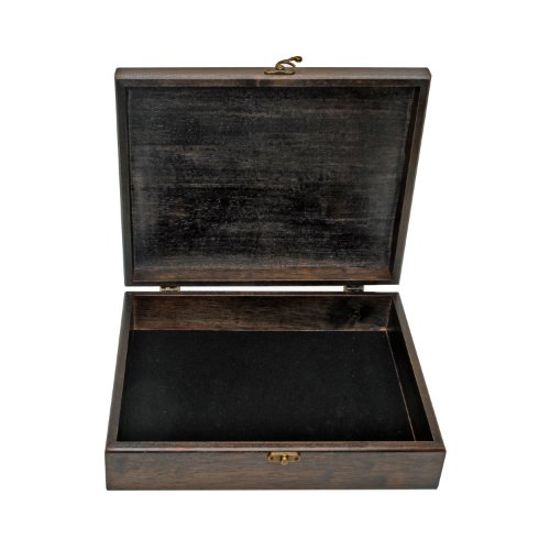 -. Feature : Old World Style Wooden Box with Latch Closure / Outside of Box Measurements: 12.125 in. x 9.5 in. x 2.875 in. / Inside of Box Measurements: Base - 11.312 x 8.75 x 1.75 inches, Lid - 12.125 x 9.5 x 1 inch / Inside Bottom is lined with felt. Bottom of box is felted to prevent scratches to surfaces. / Many Uses - Holds important documents, chess pieces, car keys, photos, etc.
