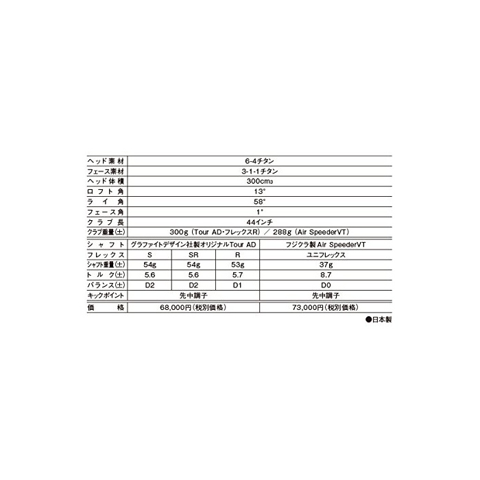 샤프트:그라파이트 디자인사제 오리지날 Tour AD 카본 샤프트