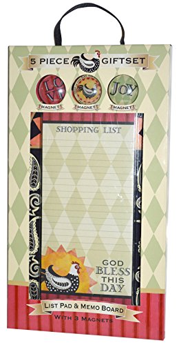 Divinity Boutique 23731 Rooster Magnets and List Pad on Sign, Multicolor