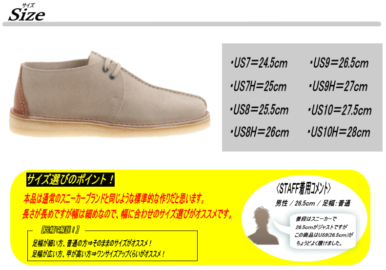 | サイズ | 作り⇒標準 【サイズ選びのポイント!】 足幅が細い方、普通の方⇒そのままのサイズがオススメ! 足幅が広い方、甲が高い方⇒ワンサイズアップくらいがオススメ! |