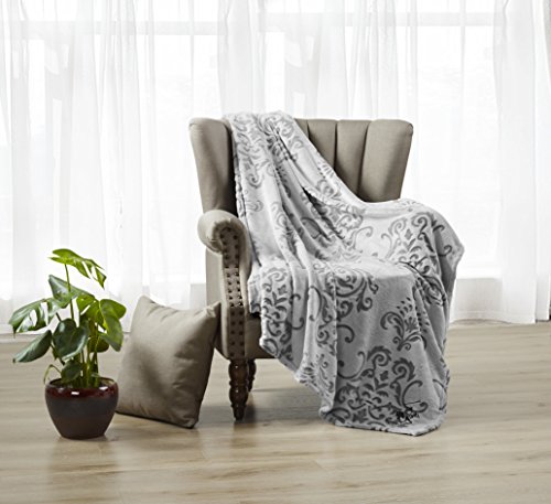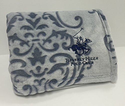 Beverly Hills Polo Club Blanket Luxury Plush Sculptured Microfiber, 50" x 60", Gray