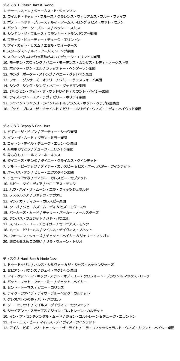 ジャズを創った男と言われるルイ・アームストロングからデューク、マイルスまで時代を彩った様々なアーティストの名曲・名演を揃えた決定版です!