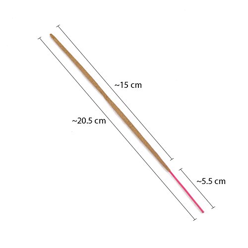 - Stick Length: 8 inches; Burn Time: About 40 minutes; Available now in Ayurvedic, Maddipal, Nag Champa, Frankincense, Patchouli, Persian Rose, Tulasi Kesar, Tulasi Lobhan, Jasmine, Sandalwood and Kesar Saffron fragrances only. Combo packs of Nag Champa, Frankincense, Patchouli, Persian Rose, Jasmine and Sandalwood. Also available as Incense Cones in Nag Champa, Lavender, Lobhan, Sandalwood and Rose fragrances