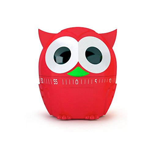 -. Feature : Adorable wide eyed owl kitchen timer doubles as counter top décor / Timer goes up to 60 minutes / Steel mechanism with plastic exterior and rubber feet / Assorted red, yellow and light blue colors (color is random and chosen at the time of shipping) / Measures 3 x 3 x 3.25-inches